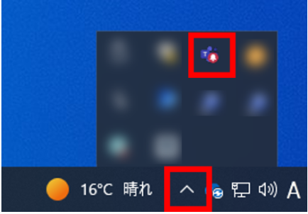 画面右下の通知領域(時計の近く)にある「^」マークをクリックして、隠れているインジケーターを表示します。